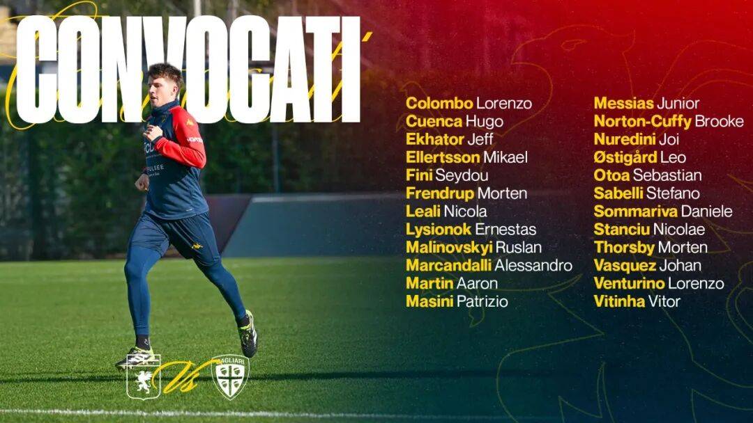 卡利亚里目前排名第十五,领先佛罗伦萨五分。卡利亚里缺少米纳、Michael Folorunsho、Mattia Felici和Alessandro Deiola,罗格已经和球队解约,佩德罗伤愈复出,米纳在训练中扭伤膝盖。中场普拉蒂继续得到都灵兴趣,但交易处在早期阶段。卡利亚里在热那亚的费拉里斯球场战绩糟糕,近十六次交锋两胜两平十二负,这对于本赛季客场表现出色的撒丁岛球队而言是一次严峻挑战。卡利亚里本赛季客场输掉四场,除了两球不敌拉齐奥,其余三场均一球小负。